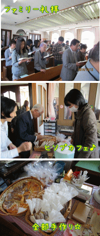 ファミリー礼拝がある日は、昼食の用意はないのですが、代わりに、ひそぷカフェがありました。中学生以上の「ひそぷ」という若者たちの集まりによるカフェで、手作りのクッキー等とコーヒーのセットで50円。その売り上げが会堂献金になります。大人の方々がいつも喜んで買い、また多く献金してくださいます。ひそぷのメンバーにとっても、大きな励みになっています。