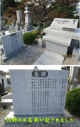 その帰りに、葛岡斎場の入り口にある石材店に彫刻料の支払いをしようと思って行きましたが、あいにくお店は閉まっておりました。日曜日ですから、仕方がありませんね。それで、そのすぐ近くに2年前の11月に召されたM兄のお墓があるのを思いだし、ちょっと立ち寄りました。お花はなくてごめんなさい。その代わりに、ご家族のためにお祈りしました。