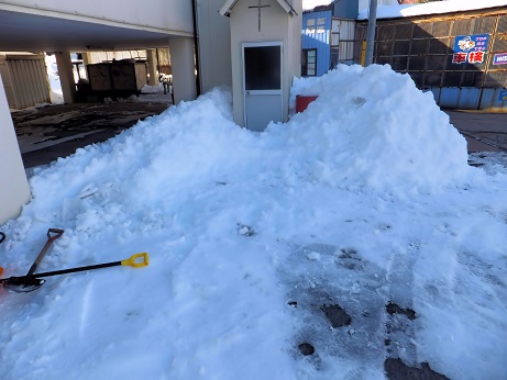 した。“雪割り”と言ったほうが正確でしょうか。教会の駐車場は、午前中の早 い時間を過ぎるとすぐに日陰になってしまうため、なかなか雪が解けません。そ