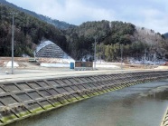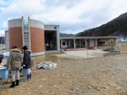 女川で昼食を済ませた後(私は漬けマグロ丼、娘たちは復幸女川カレー)、最終訪問地である石巻に行きました。まずは2012年11月に再開した石ノ森漫画館。次に、「がんばろう!石巻」という看板が震災直後から掲げられている場所へ。寒風の中、神戸から来たというボランティアの方々が温かな飲み物をふるまって下さいました。そこからすぐ近くには、震災後の火事で焼けてしまった門脇小学校があるのですが、今日はシートに覆われていました。まもなく解体作業が始まるのでしょう。