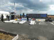 次に、女川を訪れました。この女川の町は20メートルの津波に襲われたと言われます。それがどれほどの高さのものであるか、現地に行ってみるとよく分かります。海岸近くの海抜16メートルの高台にある町立病院が2メートル近くの津波に襲われて一階フロアが浸水し、駐車場にあった車が次々と流されたというのです。その高台から見下ろす風景は、一年前とあまり変わっていないように思いました。その高台からすぐに下に降りると、津波によって倒壊したビルの一つ、泉沢水産ビルが横倒しになっています。そのすぐそばには、これも裁判になった七十七銀行女川支店があった場所に献花台が設けられており、遺族の方々が署名活動をしておられました。震災当日、行員13名は10メートルの高さの2階建て支店屋上に避難しましたが、それをはるかに上回る高さの津波に襲われて犠牲となりました。高台にある町立病院までは走れば1分の距離だということで、遺族の方々の無念さは、計り知れないものがあります。妹さんを失ったという女性の方が、その悲しみを聞かせて下さいました。