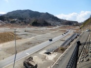 そして最後に、その近くの急な石の階段を登ると、テレビなどでもよく映される日和山公園があります。震災当日、多くの人々がこの階段を上って津波を逃れたと言われます。そこから眺める風景によって、少しずつ復興が進んでいる様子が分かります。かつて市立病院が建っていた場所は、今は建物が取り壊され、かさ上げのための盛り土がなされていました。また、海岸線近くには無数の車が積み上げられていましたが、今日はもうそれらがなくなっていました。震災発生時刻が近づくにつれ、多くの方々が集まってきて、午後2時46分、サイレンの鳴り響く中、1分間の黙祷をささげました。黙祷しながら、3年前の震災のことがよみがえり、建物が倒れるのではないかと思いながら大きな声で叫んでいたときのことを思い出しました。*続きます