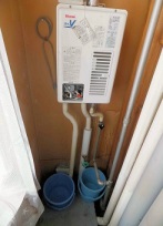 急いでバケツを下に置きましたが、しばらく前から水が漏れていたようで、1階の駐車場にも水が漏れて落ちていました。電源を切ってコンセントを抜き、ガスサービス会社に電話をしたところ、次の日に見にきてくれるとのことでした。電話では、水漏れしながらも使ってもいい、使わなくなったらバルブを締めて電気を切ればよい、とのことでした。ところが、コンセントを差し込んでスイッチを入れても、もう電気が入りませんでした。ショートしてしまったようでした。