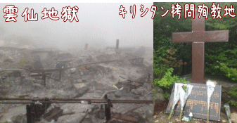 その後、雲仙普賢岳の土石流災害で知られる雲仙に、キリシタンを拷問にかけた雲仙地獄があります。棄教を迫るために、フツフツと沸く湯の中に沈めたり、熱湯をかけたりして、棄教しないキリシタンは殉教していきました。高い場所にあるため、霧がひどく、数メートル先も見えないほどでした。