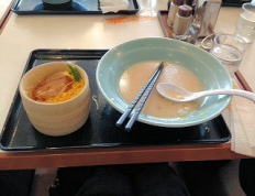 朝8時30分、飛行機で仙台空港から福岡空港へ飛びました。大雨の中、レンタカーで長崎に向かいました。途中、サービスエリアで長崎ちゃんぽんをいただきました。ほとんど食べ終わってから、忘れていた写真を撮りました。長崎ちゃんぽんですが、確か食事をした場所はまだ佐賀県だったはず・・・。
