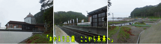 続いて、田野畑村にある北山崎という、三陸随一の壮大な眺望と言われる場所に向かいました。その途中、三陸鉄道の島越(しまのこし)駅で写真を撮りました(下の写真)。ココは、海岸のすぐそばにある駅ため、津波によって駅舎も線路もすべて流され、開通が最も遅れた場所でした。その三陸鉄道の北リアス線も、小本~田野畑駅間が開通し、今年の4月に全線開通となりました。