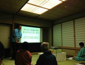 そのようにして時間を使いながらも、もうやることがないために早めにホテルに行ったところ、まだ2時間近く前でしたが、気持ちよく案内され、部屋でゆっくりとすることができました。そのホテルで、予定になかった一つの企画がありました。夏休み限定ということでしたが、夜、一つの部屋で「3月11日 忘れられない時を超えて」という題の語り部が行われました。ホテルのスタッフが、震災当日の様子と、その後、約一ヶ月間の避難者との共同生活の様子を映像を交えて話して