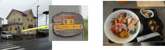 その礼拝も終わり、昼食のお誘いを失礼して、宮古駅に戻ってきました。教会の皆さんとのお交わりもしたかったのですが、宮古に来た一つの大きな目的は、三陸の海鮮丼を食べることでしたので、昼食をとらずに出てきました。お目当ての海鮮丼、値段もそれなりにするのでどうしようか迷ったのですが、「復興支援!」のひとことで、4人そろって海鮮丼を注文しました。この写真のとおり、立派な海鮮丼でしょう。ネタの種類の多さに驚きました。そしてやっぱり、おいしかったです。
