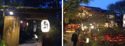 夕食に、先生に立派な料亭に連れて行っていただきました。「千と千尋の神隠し」に出てきそうな雰囲気の料亭でした。美味しかったです。