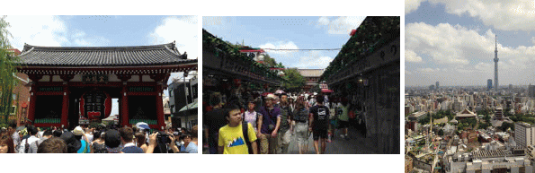 浅草寺はたいへんな人出でした。まあ外国人が多いこと。スカイツリーが近くに見えましたが、暑さのために行くのをやめました。