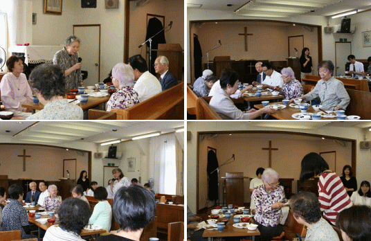 礼拝後、敬老祝会を行いました。体調不良などのために出席できない方もおられましたが、8名の敬老対象者の方々をお祝いいたしました。年を重ねながらも、毎週の礼拝に集うことが許されていること、それが何よりもの恵みだと感じたことでした。主が許してくださる限り、これらの方々と共に礼拝をささげ続けたいと心から願っております。